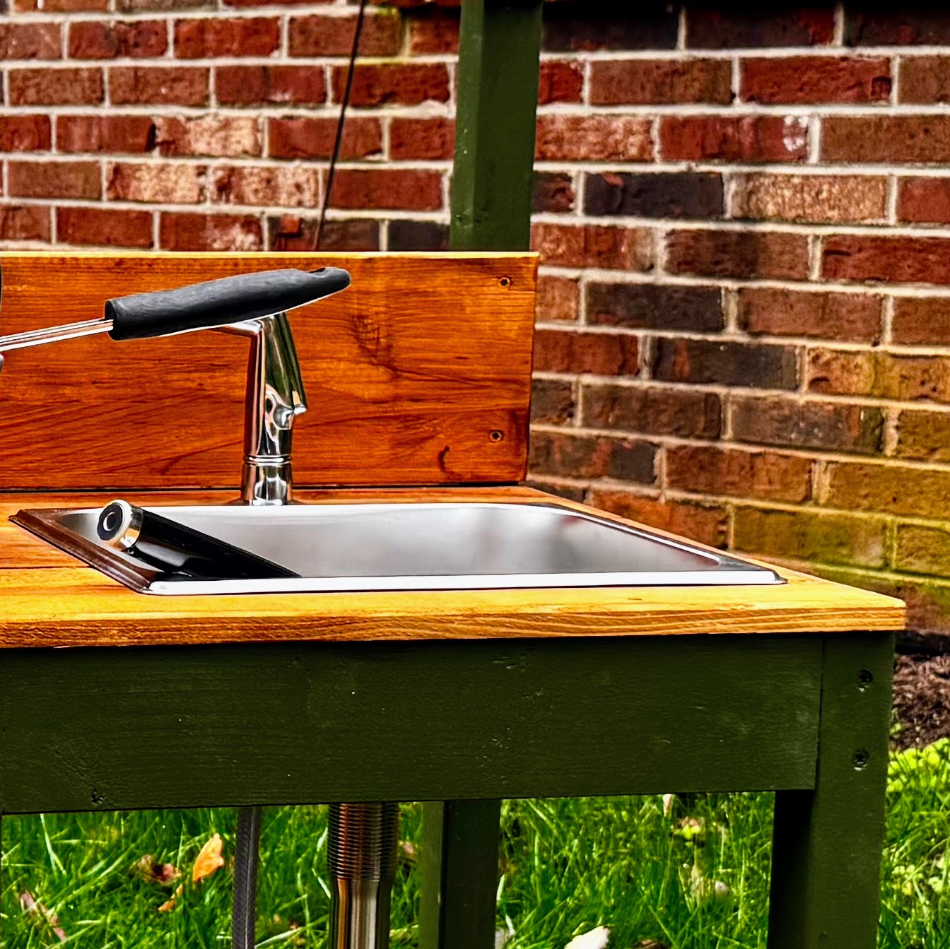 This adds the basin and a sprayer that hooks to your garden hose and includes a drain.