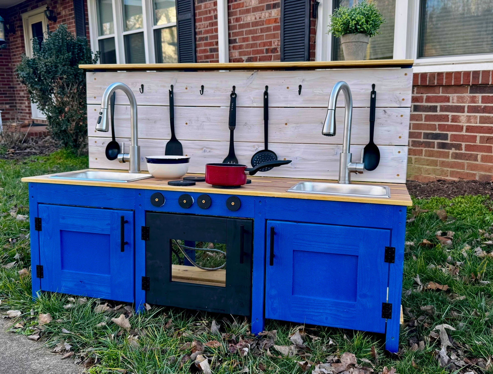Add a touch of rustic charm with a whitewashed backsplash. Light, neutral tones blend beautifully with any finish and give your mud kitchen that cozy, farmhouse feel.